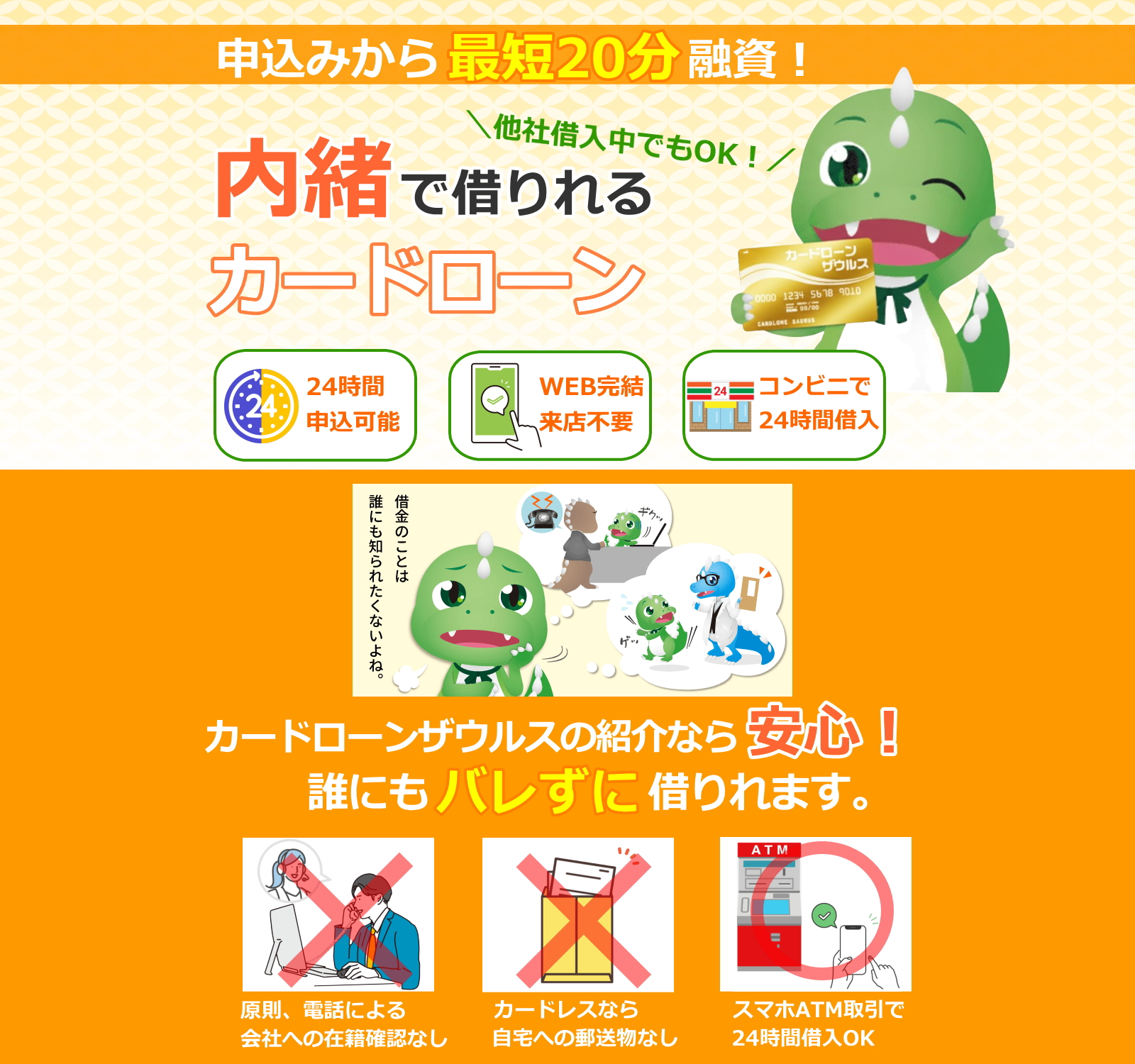 | 会社在籍確認 | 原則電話連絡なし | 原則電話連絡なし | 原則電話連絡なし |